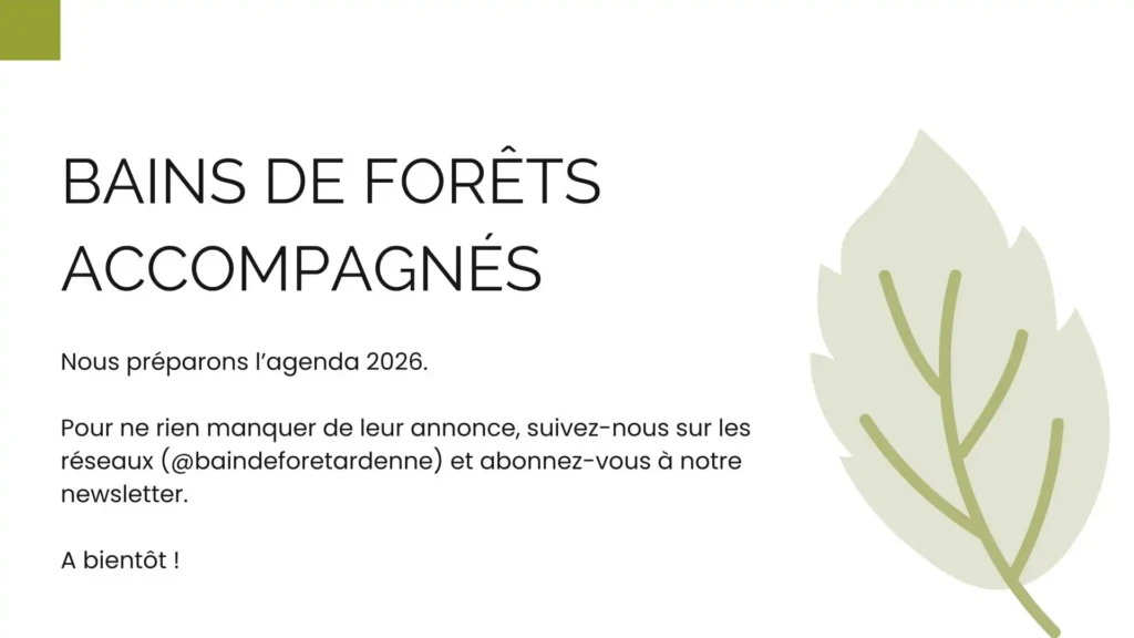 Les lieux de départ des bains de forêt accompagnés sont toujours situés dans la commune de Tenneville et sont communiqués aux participants quelques jours avant la date du bain de forêt guidé.
